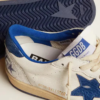 Ball Star weißes Nappaleder mit Stern und blauem laminiertem Lederabsatz