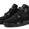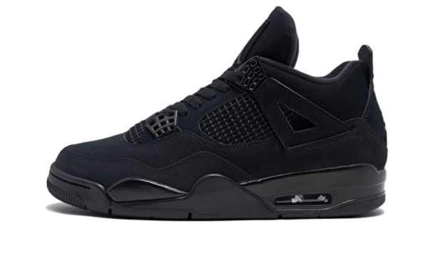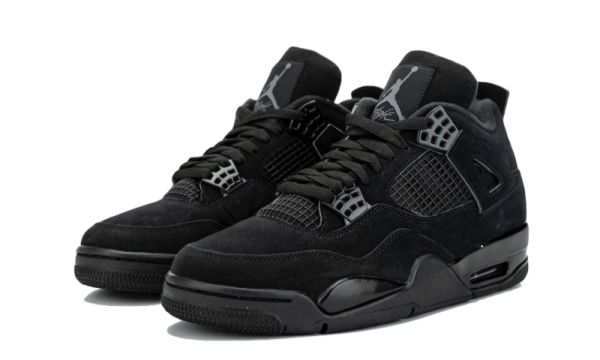 Air Jordan 4 Black Cat har en monokrom sort overdel, der er fremstillet i Sverige, og hvor kun et sølvfarvet spring på tungen står i kontrast til resten. Tilsvarende elementer som snørebånd, øjer og vinger sublimerer designet, som også afsluttes med en helt sort sål.