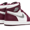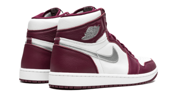 Air Jordan 1 High OG Bordeaux har en overdel i læder med en hvid base og bordeauxrøde overlays. For at fuldende efterårslooket findes den samme farve på tungen til branding og snørebånd. Endelig fuldender en metallisk Swoosh stilen, ligesom på Air Jordan 1 Retro High Midnight Navy.