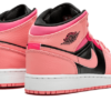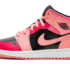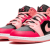 Là Air Jordan 1 Mid Gesso di corallo Pink Indossa una base in pelle nera su cui troviamo la sovrapposizione dei pannelli rose e Fuschia. Il salto sulla lingua prende anche una tonalità rose Per essere d’accordo con il resto della scarpa.